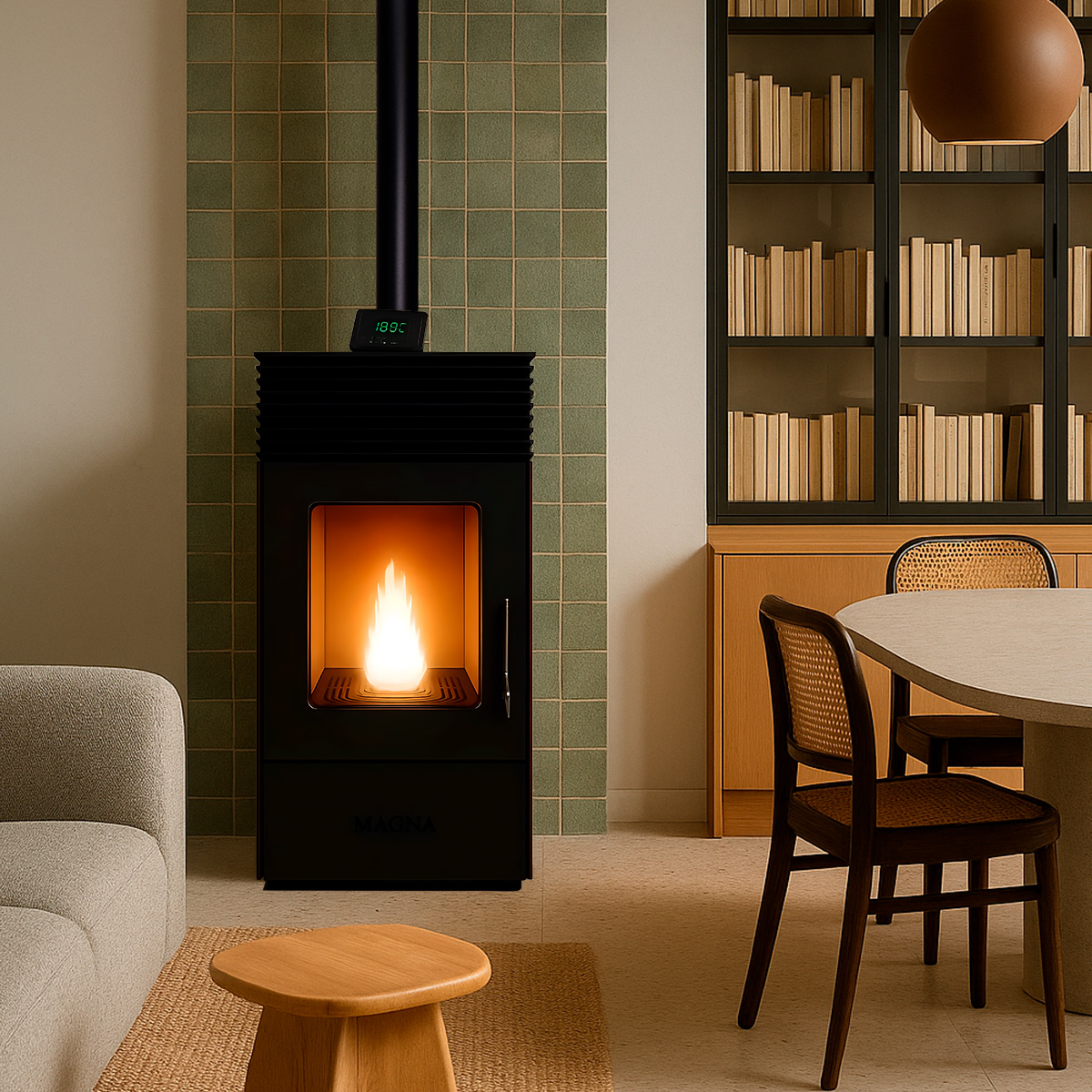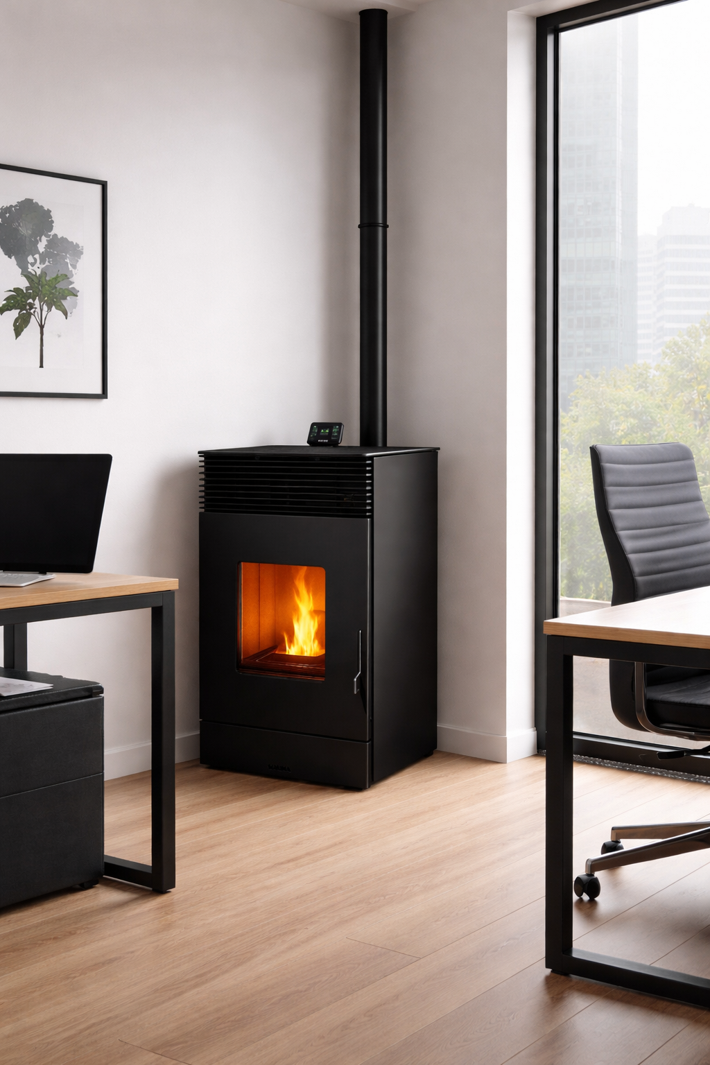 La Frida 12 kW eleva el estándar de las estufas a pellets, combinando más potencia con el mismo diseño sobrio y eficiente que ya conocés. Fabricada en acero de alta calidad y equipada con tecnología de última generación, convierte el encanto del fuego en una experiencia aún más cálida y confortable.