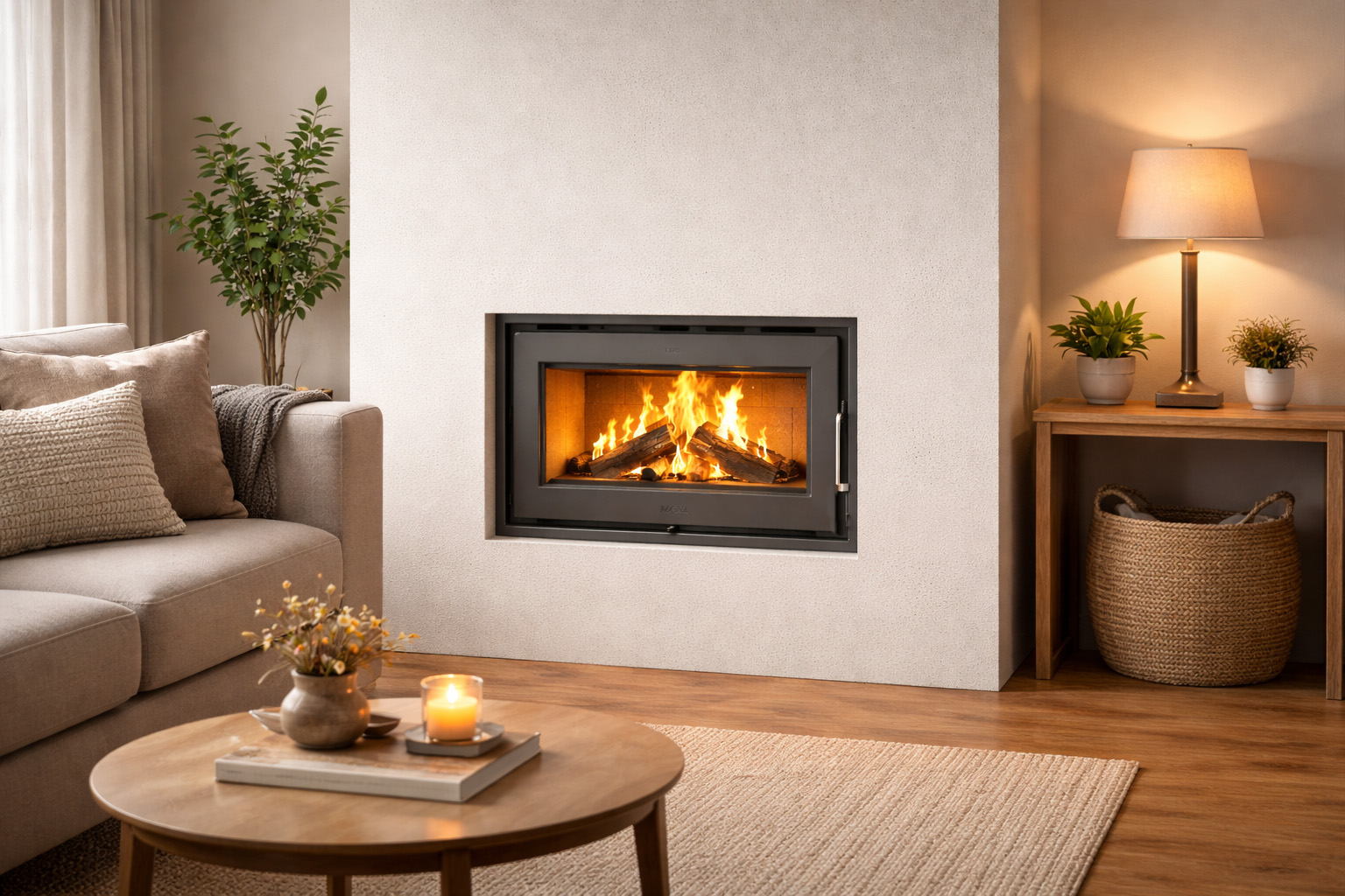 Gracias a su tecnología de combustión eficiente, logra una excelente capacidad de calefacción optimizando el consumo de leña y manteniendo el calor por más tiempo. Su diseño para instalación insertada en pared aporta una terminación moderna y minimalista, integrándose con armonía a distintos estilos de decoración.