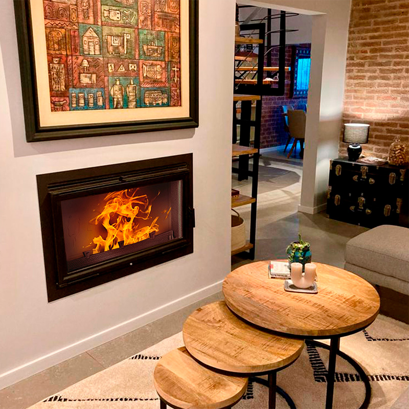 Doble combustión: La inyección de aire precalentado, a través de su doble espalda de hierro fundido, permite una combustión mucho más completa de los gases que pudieran quedar inquemados, mejorando sensiblemente el rendimiento, a la vez que reduce al mínimo la emisión de contaminantes. Este sistema que incorporamos de serie, nos distingue frente a otros aparatos tecnológicamente menos avanzados.